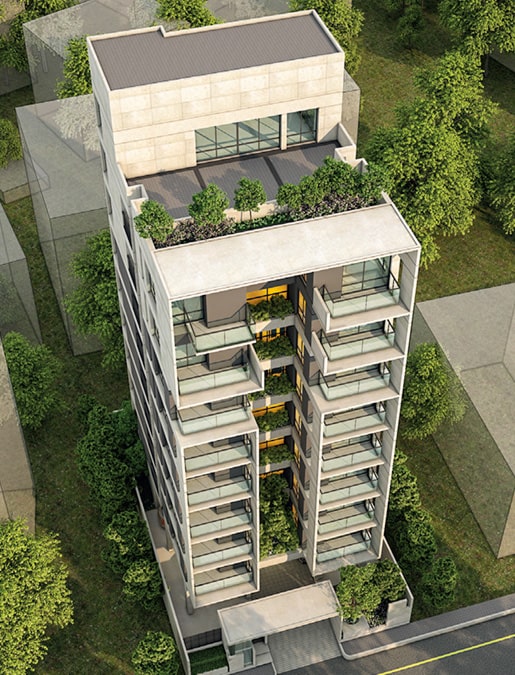 This is a 9th storied building with single apartment per floor. Each of those apartments are 2165 sq.ft. (4Bedrooms Apartment). The establishment is south facing and the floors are designed in such a way that facilitates ventilation, so the residents can enjoy that sweet southern breeze.