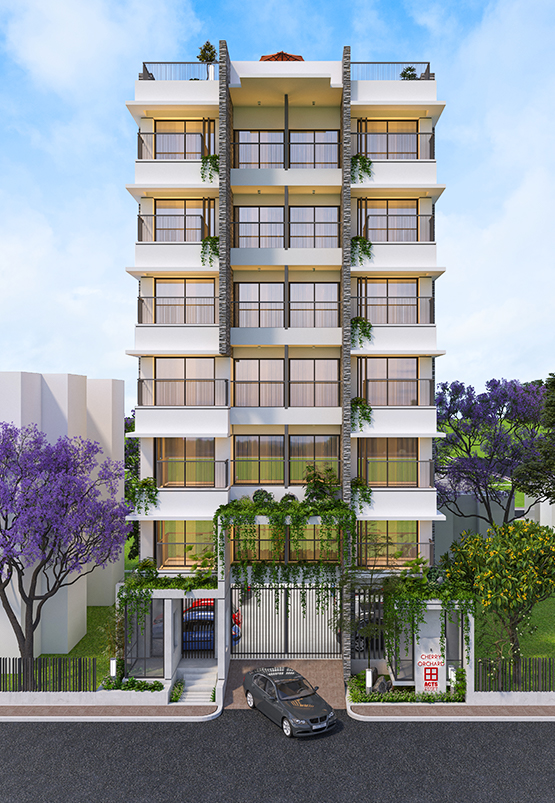 This is a 9th storied building with single apartment per floor. Each of those apartments are 2165 sq.ft. (4Bedrooms Apartment). The establishment is south facing and the floors are designed in such a way that facilitates ventilation, so the residents can enjoy that sweet southern breeze.