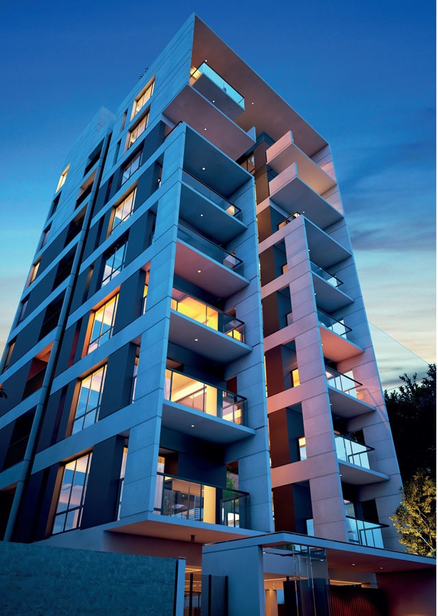 The building consists of a single apartment per floor. Balconies are perched on the front side and are designed in a manner which allows both natural light to flood into the rooms, and also act as a screening layer for privacy.